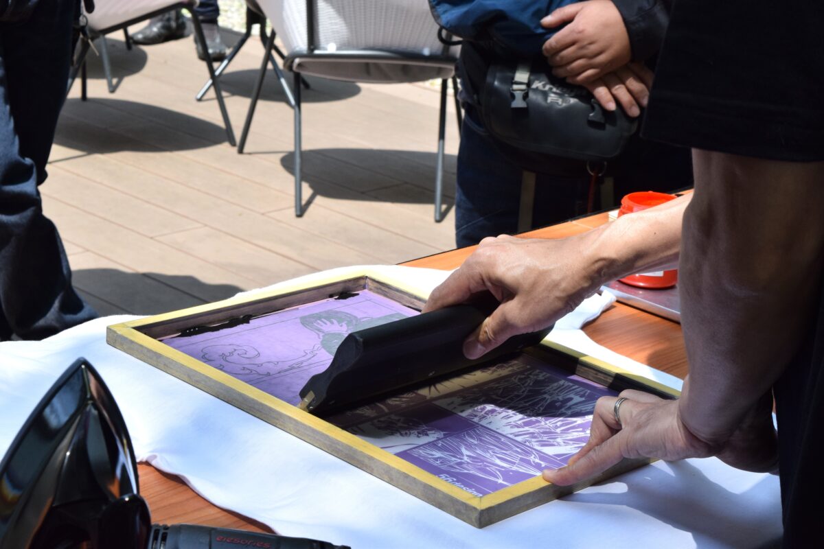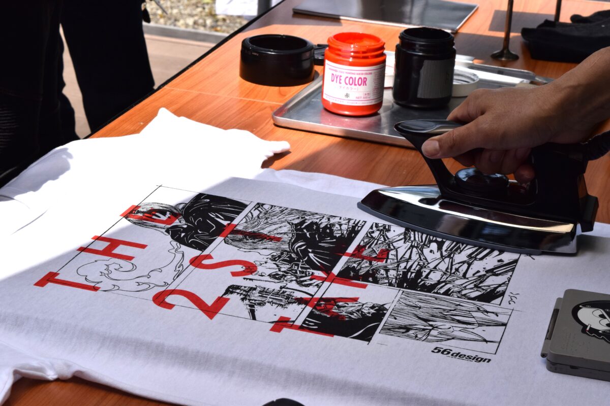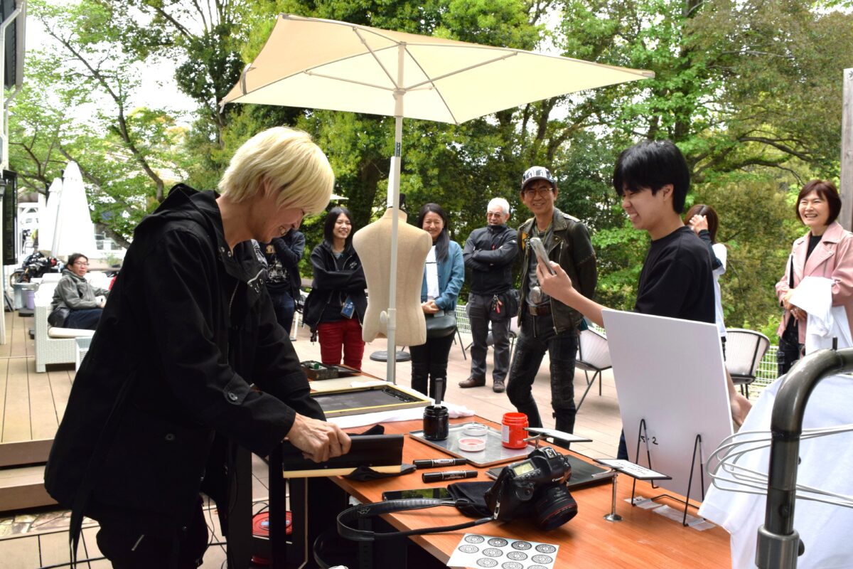 レセプションの前後では、KIICHI氏が展開するTシャツブランド「白いTシャツと黒いバイク。」のライブプリントによるイベント限定Tシャツの販売も行われ、これを目当てに来場する人もいた。