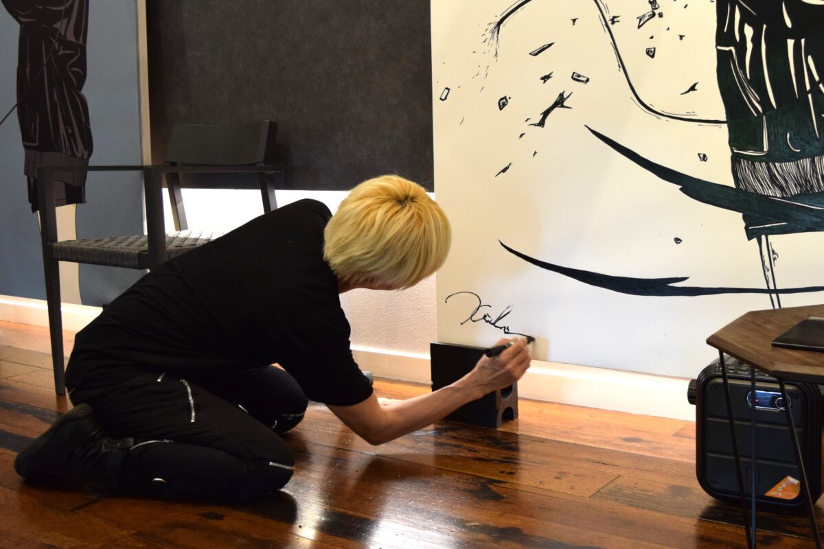 レセプションでKIICHI氏によりサインが入れられて作品完成となった。