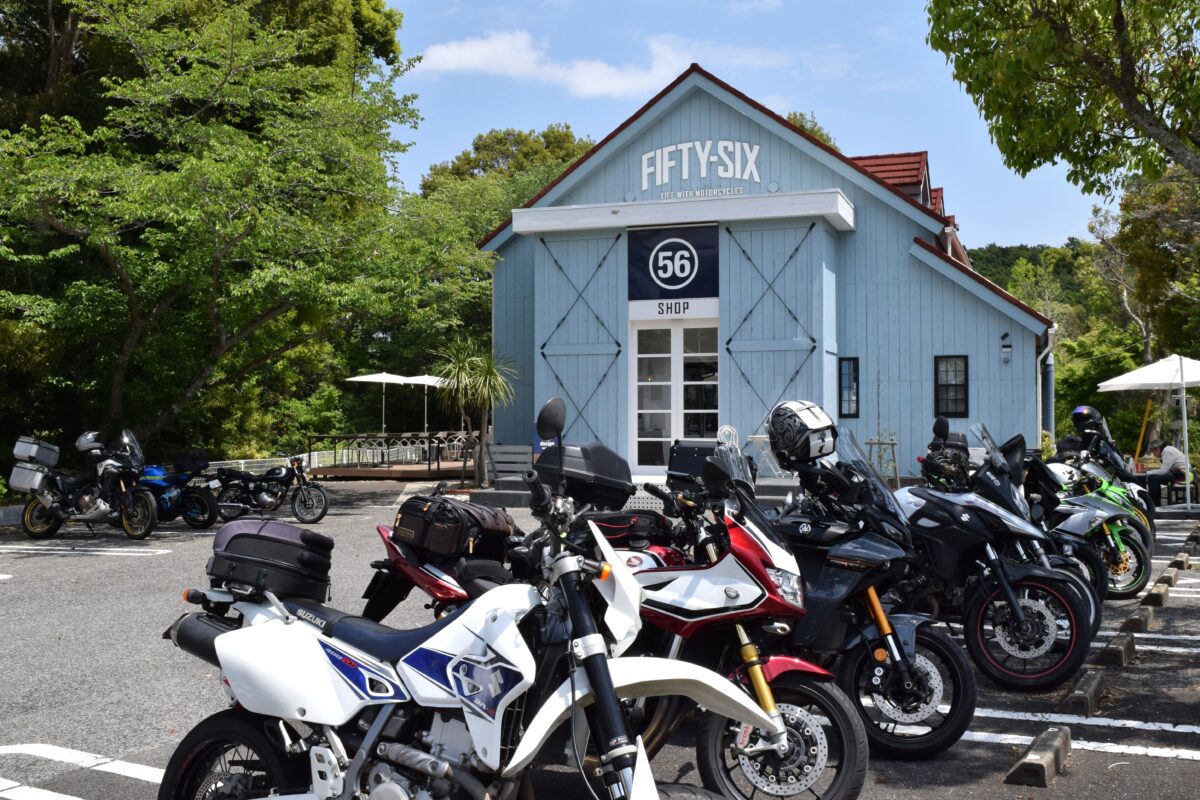 千葉県東金市のときがね湖畔にあり、建物裏のテラス席からはときがね湖を望むことができる。1階は56designのアパレルやrizomaのパーツなどが並ぶショールーム、2階は中野真矢氏が選ぶ作品が展示されるギャラリースペースだ。テラスでは同じ敷地内にあるレストランからテイクアウトしたピザを食べることもでき、落ち着いたリラックスできる空間が広がっている。