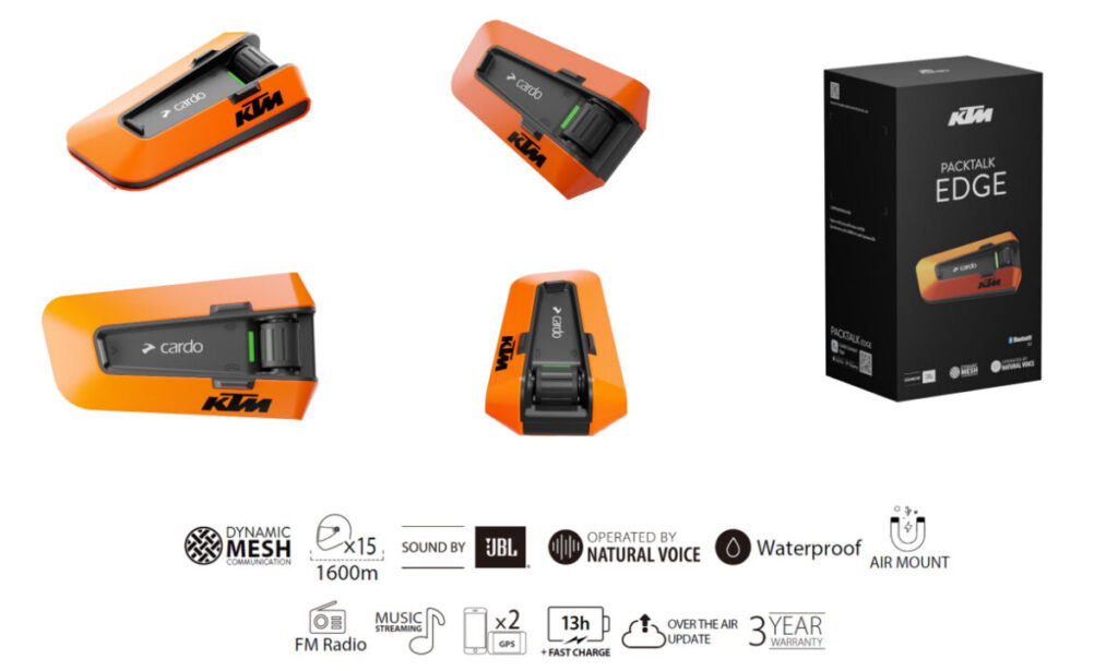 バイク用インカムのカルドよりPACKTALKシリーズのフラッグシップモデルとして、2022年9月15日より発売している “PACKTALKEDGE(パックトークエッジ)”に、KTMモデルが追加となります。