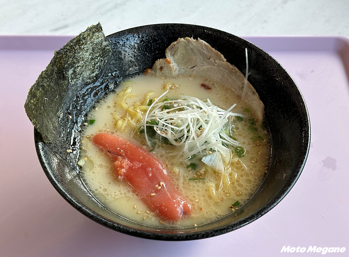 塩とんこつスープのラーメンの上にたらこが一本まるごとのっている。たらこは崩してスープに溶かすのがオススメの食べ方。スープとたらこのプチプチが一体となって麺に絡む。さらに、残ったスープにご飯を入れて食べる「たらこ塩ラーメンSET」もおすすめ。粉チーズとご飯を投入すれば、チーズリゾット風に楽しめる。