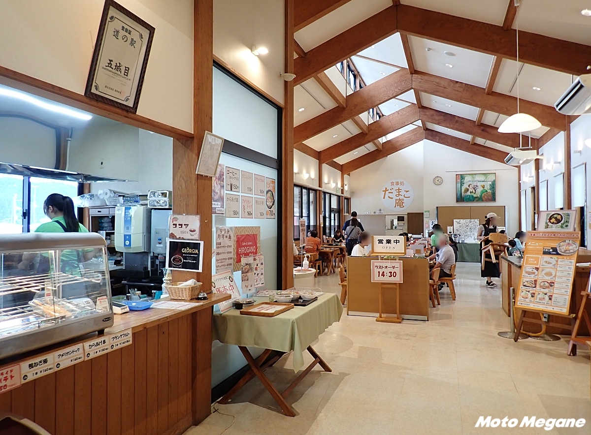 食事処では、五城目町の郷土料理「だまこ鍋定食」や、「酒かす回鍋肉定食」をはじめ、各種定食、カレーやかつ丼、そば、うどん、ラーメンなどの麺類などを味わうことができる。食事処に入ってすぐ左手には、カフェカウンターがありコーヒーなどのドリンクやソフトクリーム、テイクアウトのだまこ鍋などを販売している。ギャラリースペースも兼ねており、町の伝統工芸も展示されている。