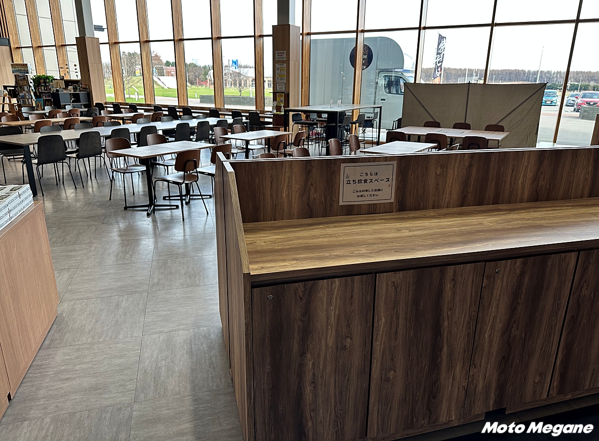 施設内には広々とした休憩スペースが用意されており、購入した食べ物はこちらで食べることができる。