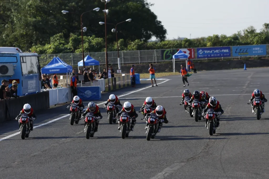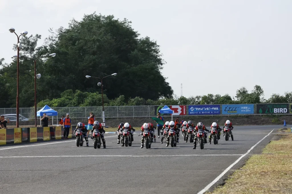 2年目となった2023年シーズンのMini-GPジャパンシリーズも、9月17日のMotoUP桶川スポーツランドで最終戦を迎えた。3月26日(日)に筑波コース1000で開催される予定だった開幕戦が悪天候のため6月25日(日)に順延。4月30日(日)にMotoUP桶川スポーツランドの第2戦が実質の開幕戦となった。4戦8レースを行い、3戦でダブルウインを達成した#10富樫虎太郎がシリーズチャンピオンに王手をかけてホームコースでもあるMotoUP桶川スポーツランドに乗り込んでいた。レース1で7位以内に入ればタイトルが決まる圧倒的有利な状況となっていた。