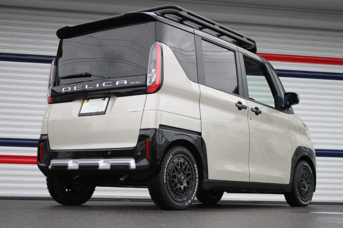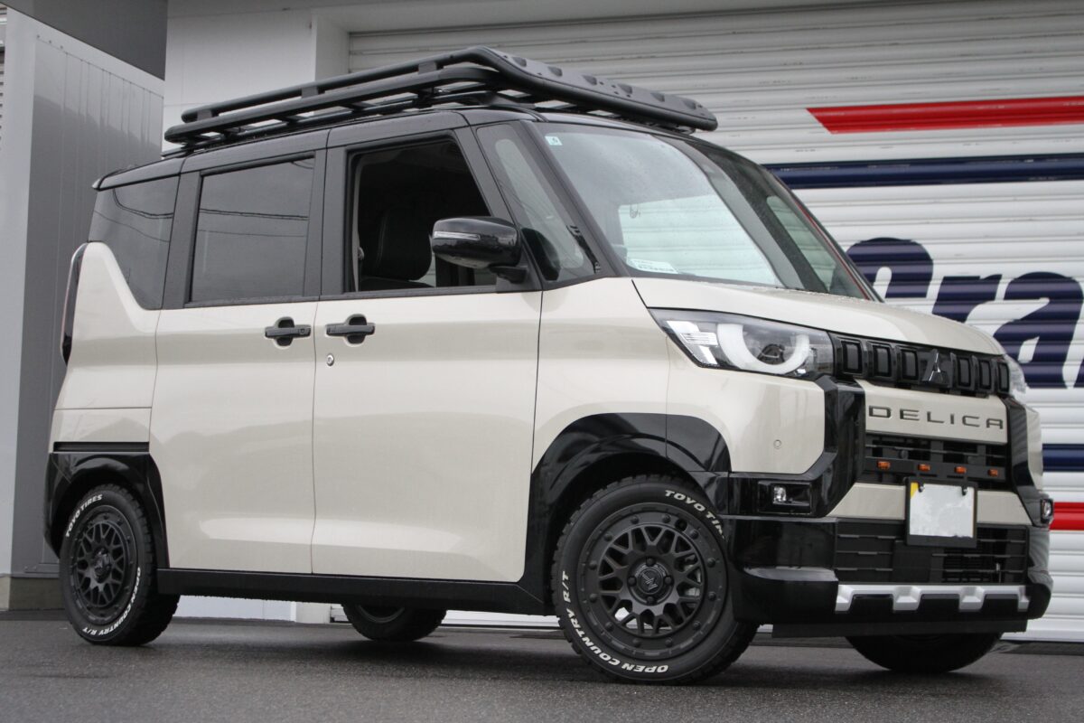 「タイヤ外径が大きくなって車高も上がっていますので、足はひとまずこれで完成です。デリカミニはまだサスペンションのパーツが少ないというのもありますが…。遊びにも通勤にも使えてバランスがいい足まわりに仕上がっています」