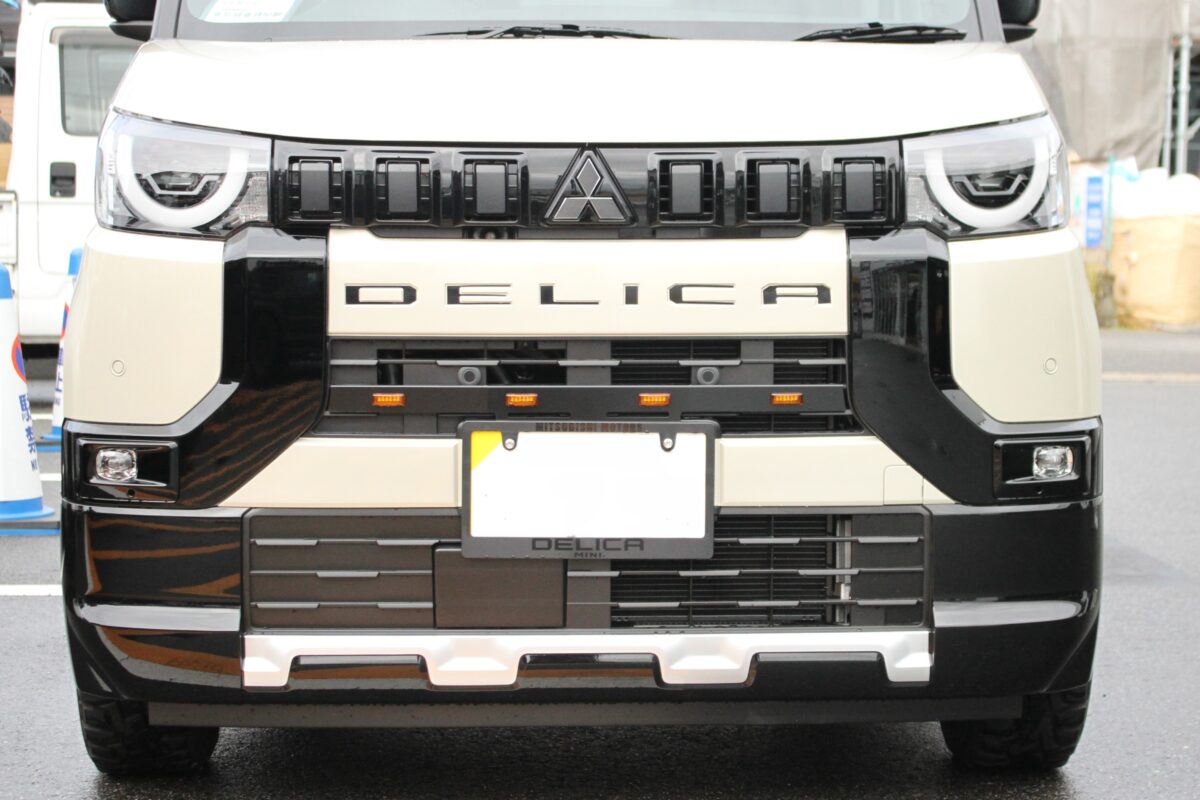 「ルーフラックはオートフラッグス。デリカミニ専用品です。フロントの“DELICA”の立体文字は中を黒くして目立たせています」