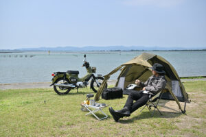 重量約2.8kgでコンパクトなこのテントは、積載量に限りのあるキャンプツーリングにおすすめです。もちろんバイクライダーに限らず、車でソロキャンプに行かれる方にもお勧めしたいアイテムです。