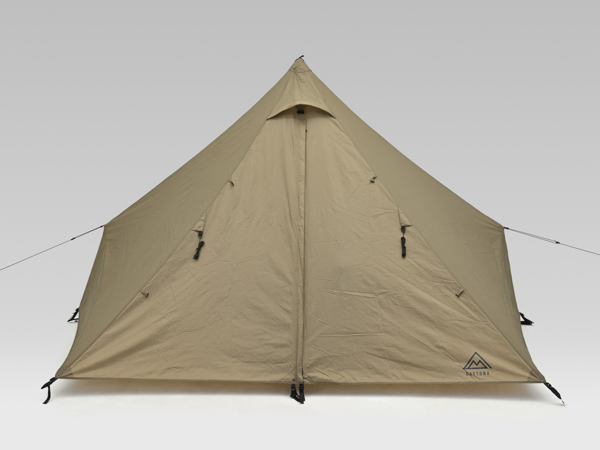 ワンポールテントの構造上どうしても、空間が狭くなってしまうというデメリット。それを解消した事で、空間の広さとスタイリッシュな佇まいを実現した点が大きなポイントです。