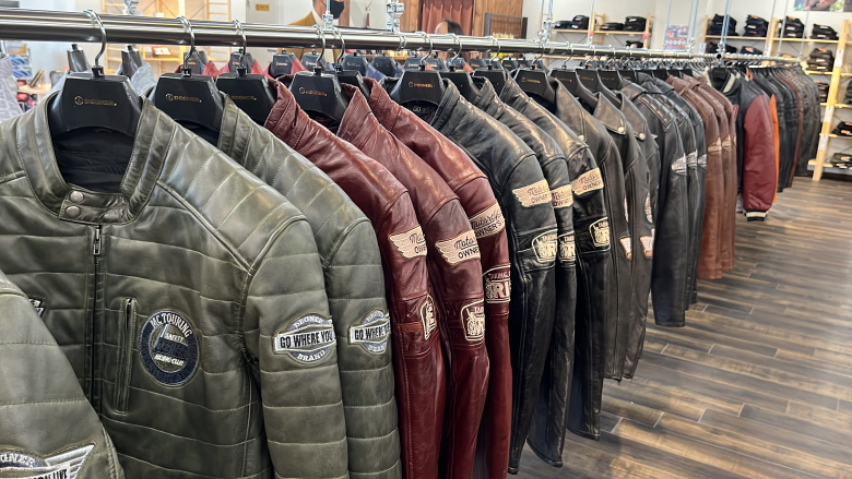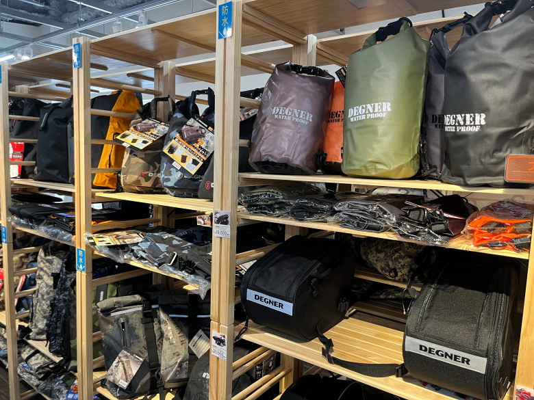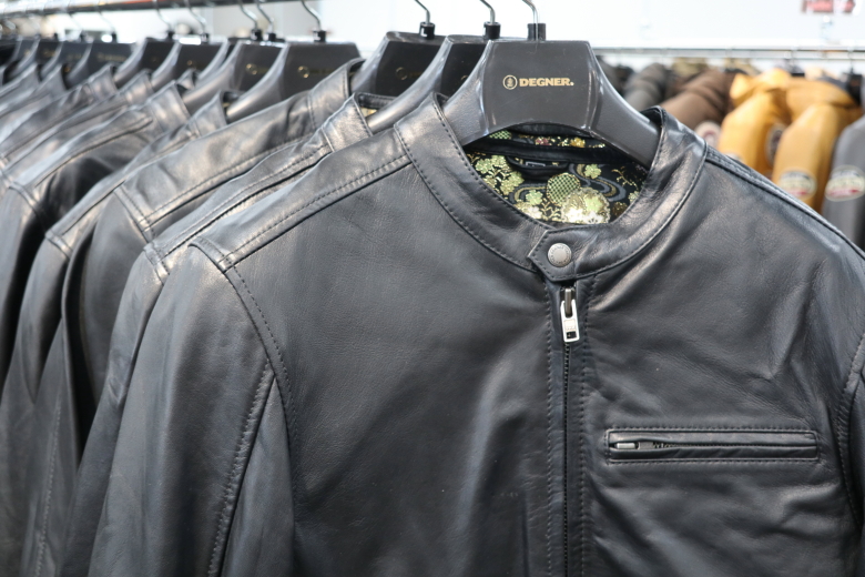 しかも、デグナーがラインナップする商品のデザインは、クルーザータイプやビンテージスタイルのバイクに合うクラシックなものから、スーパースポーツに合うレーシーなもの、ネイキッドに似合うカジュアルなものまで、実にさまざま。乗るバイクに左右されないので、異なるカテゴリーのバイクに乗る仲間と一緒に来ても買い物を楽しめちゃう!