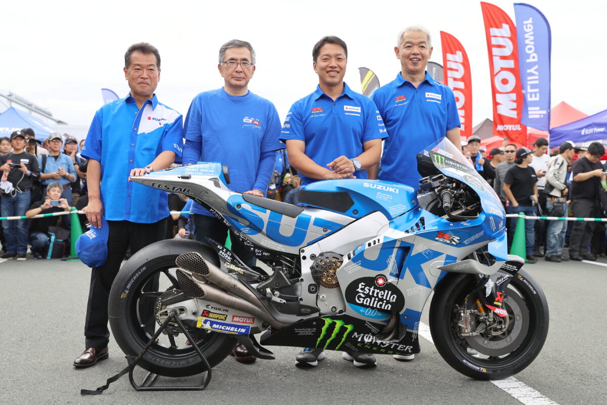 さらにサプライズイベントとして、なんとMotoGP参戦マシン「GSX-RR」が登場。エンジン始動デモンストレーションや、開発陣によるトークも行われました。