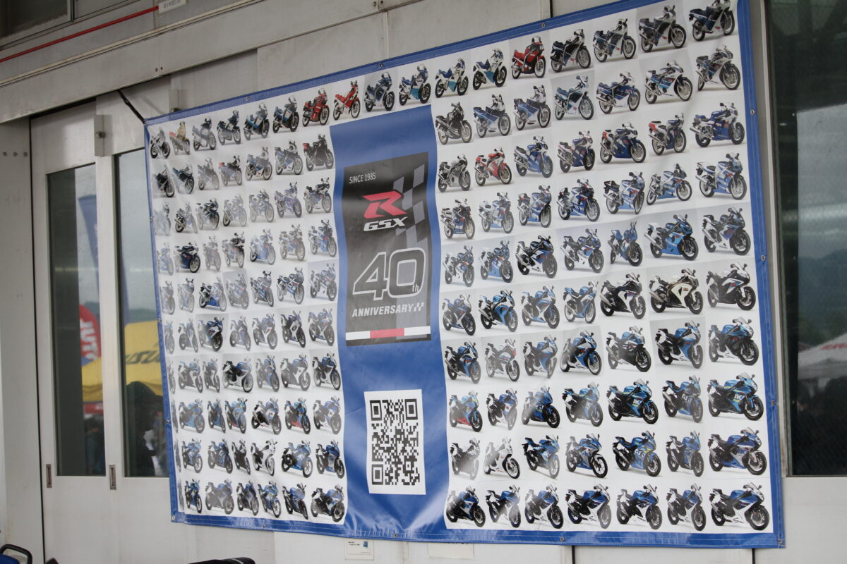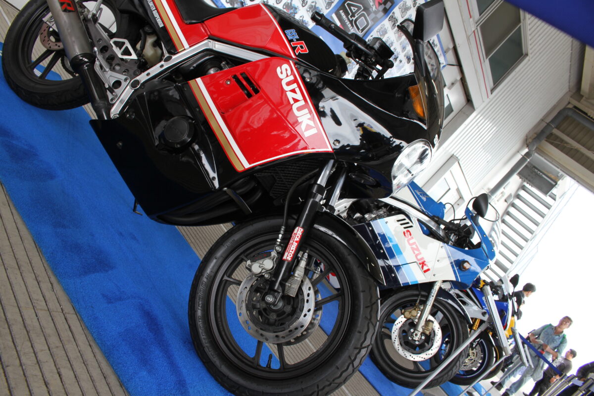 会場では、GSX-Rシリーズ誕生40周年(※)を記念した特別展示やトークショーが行われ、歴代モデルから最新型までが一堂に会しました。