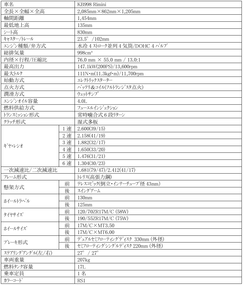 bimota KB998 Rimini 発売のご案内 (bimota 正規取扱店専売モデル)