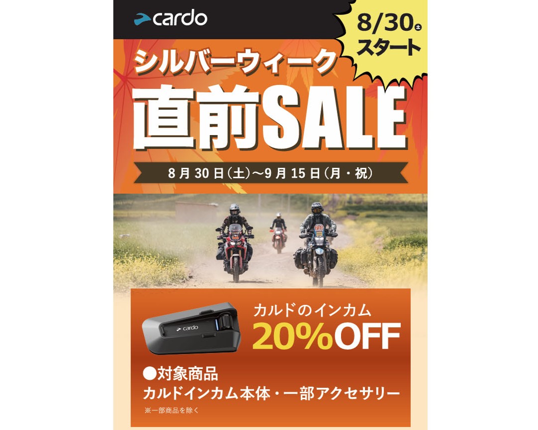 今回一部製品を除くCardo製品を対象とした「シルバーウィーク直前SALE」を開始いたします。