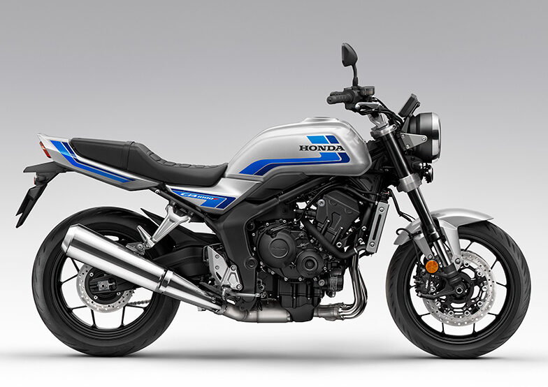 CB1000Fは、ウルフシルバーメタリック(ブルーストライプ)、ウルフシルバーメタリック(グレーストライプ)、グラファイトブラックの3色設定。