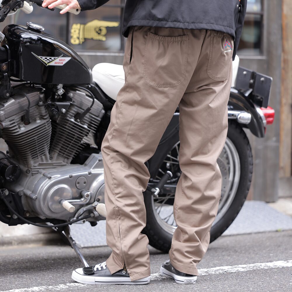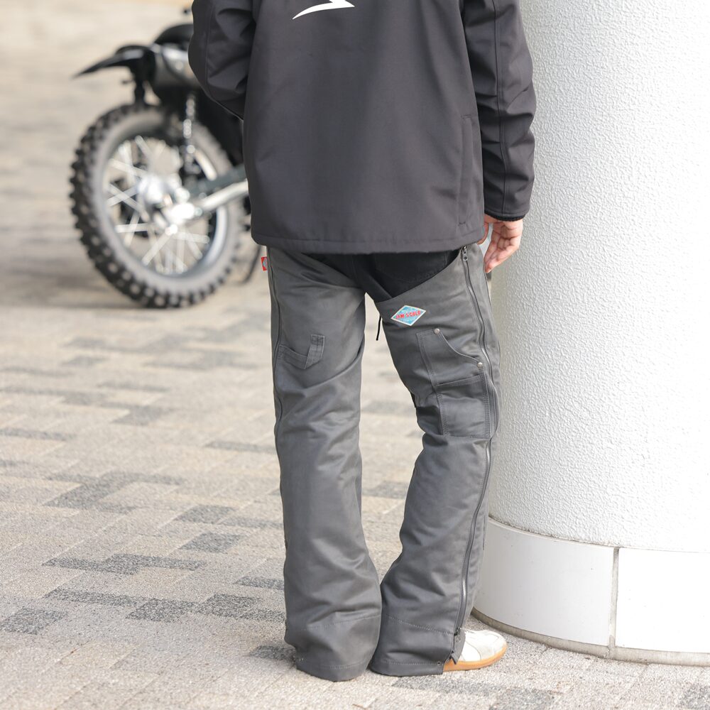 続いてミリタリーデッキパンツのWICKED! DEL RIOと同じ素材 ブーツを履いたままでも脱ぎ着が便利なサイドジップも同仕様。ライドオン&オフにうれしい裾丈の調整など、お腹までぽかぽかだから真冬のツーリングはもちろん冷凍キャンプ必須ギヤとしてもお勧めしたい