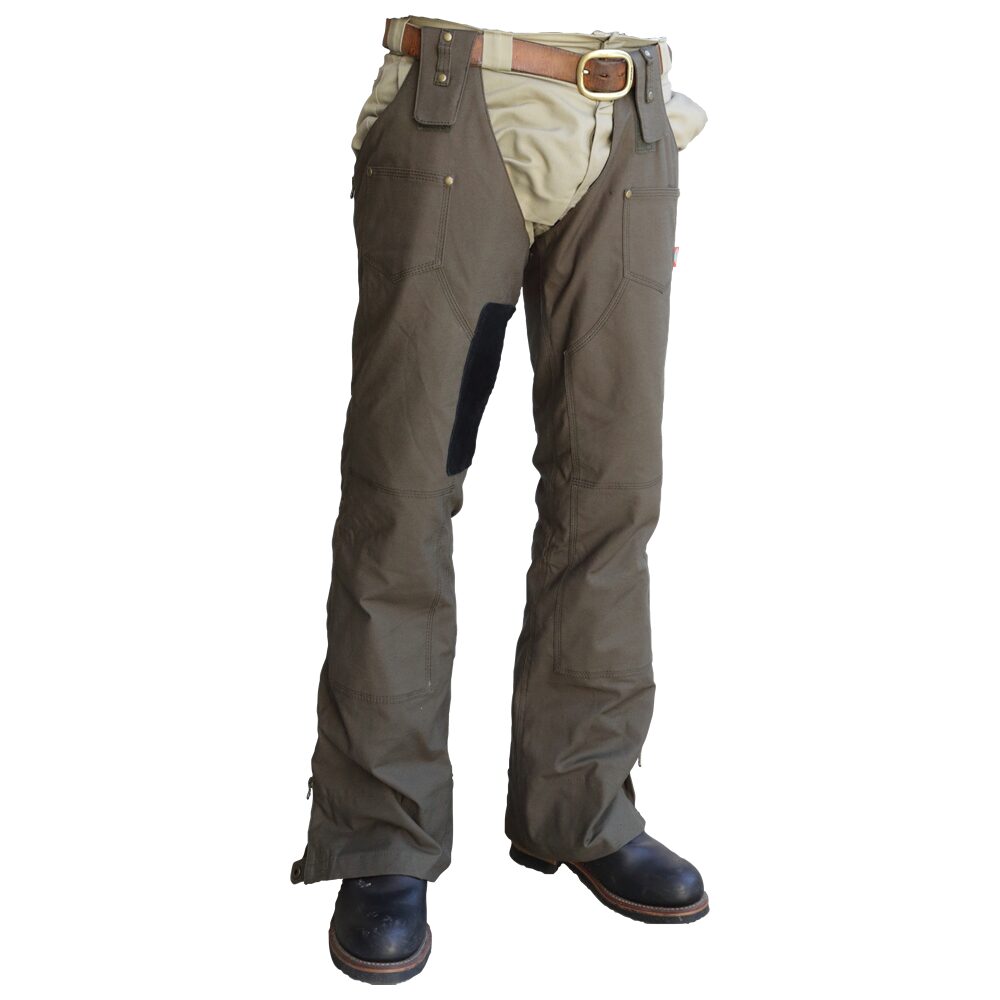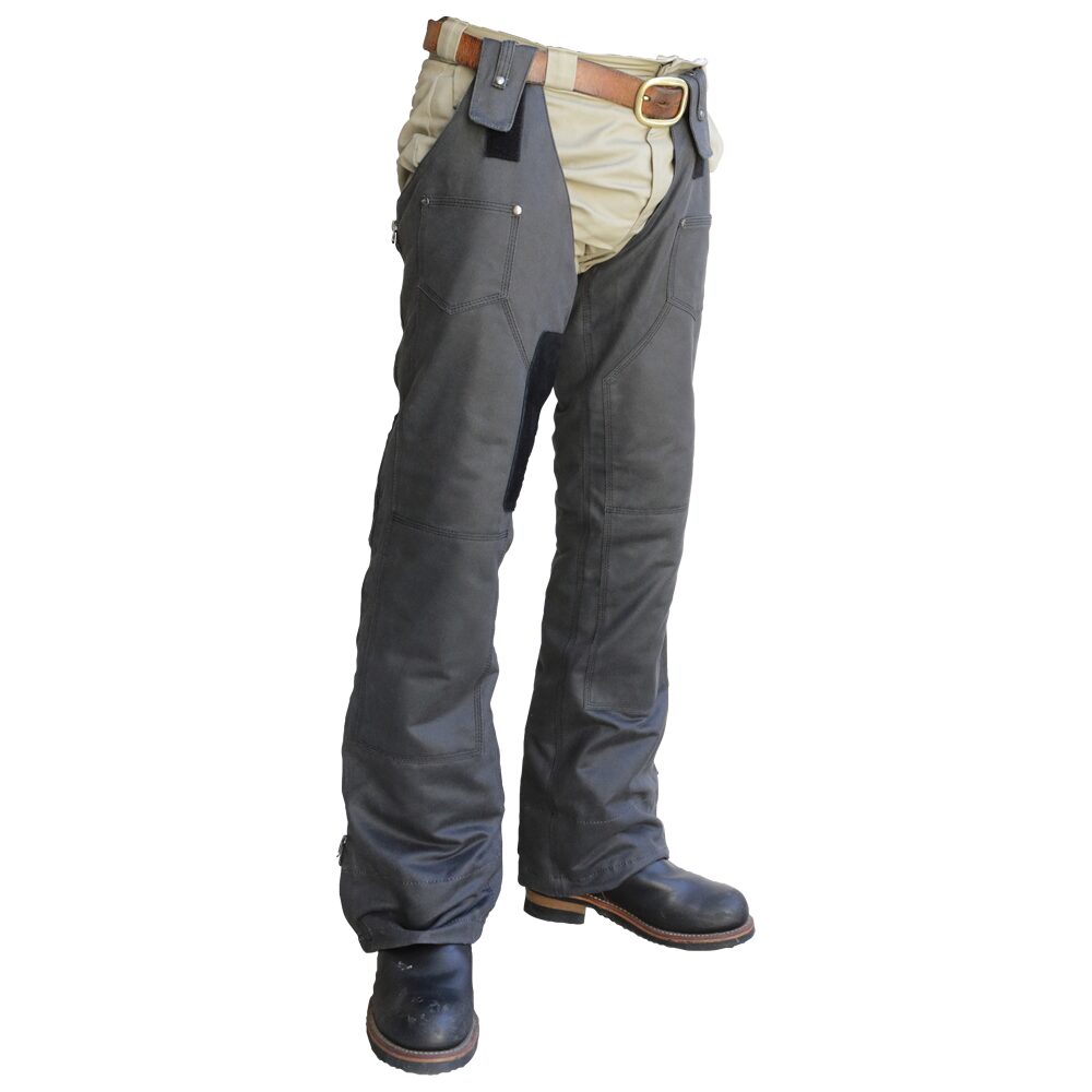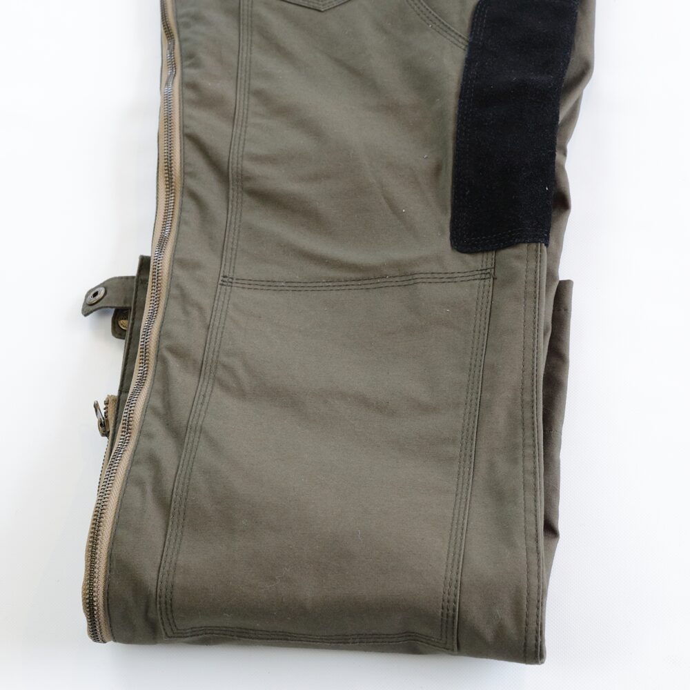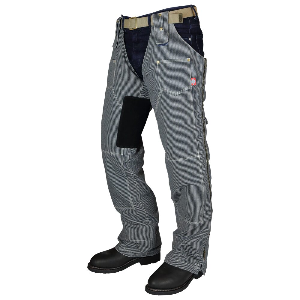 今年で5シーズン目のDEL RIO  いわいるレザーチャップスのゴリゴリ感を無くしファッションともマッチングがいいペインターパンツ風おしゃれチャップス フルジップなのでブーツを脱がずに着脱!素材は防風!見た目以上にポカポカだ 重量もなくコンパクトだから携行も楽ちん 少しタイトに履くのがルックスグッドだ!