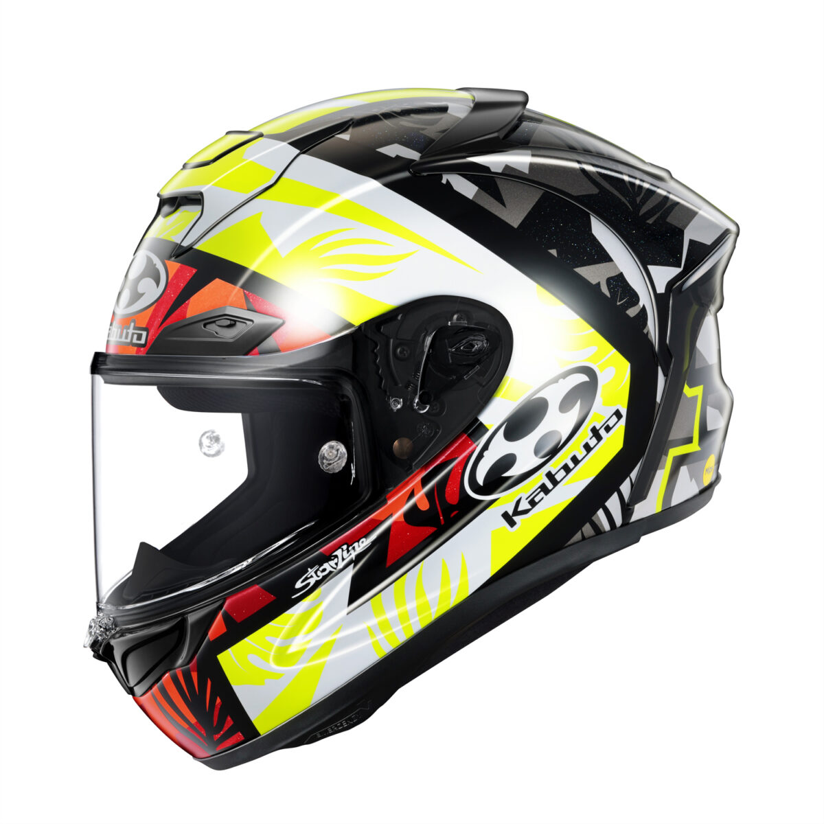 - アクシデント発生時に簡単かつ素早く安全にヘルメットを脱がせるKabutoの独自構造のエマージェンシーシステム(PAT.P)。
