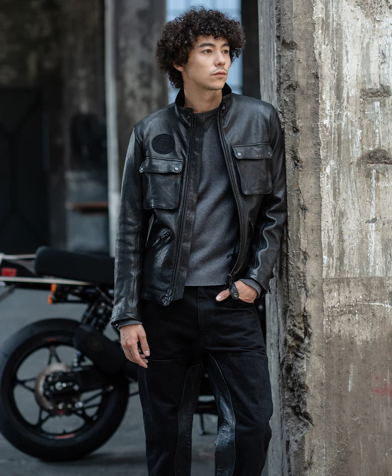 シルエットや素材感は往年の雰囲気を忠実に再現しつつ、肩・肘・背中にプロテクター装備機能を追加。