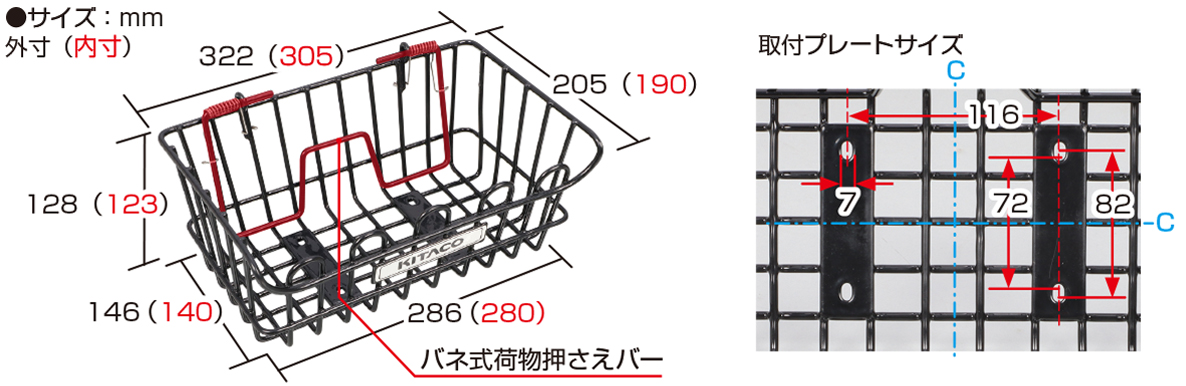 ※積載物は落下しないように紐または、バネ式荷物押さえバーで固定して下さい。