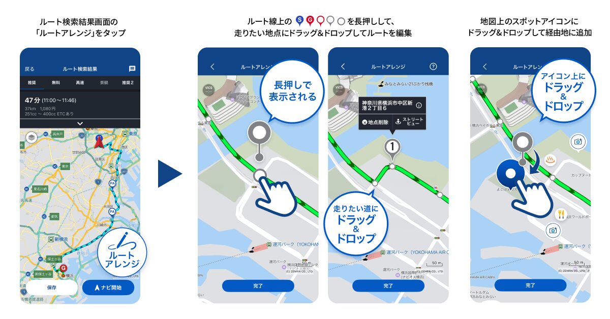 バイク専用ナビゲーションアプリ『ツーリングサポーター by NAVITIME』、「ルートアレンジ」機能を提供開始