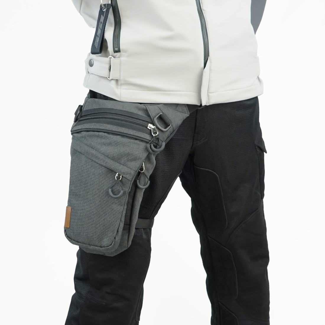 杢調生地+本革押し型ワッペンをアクセントに、バイクを降りた後も馴染みやすいデザインに仕上げています。
