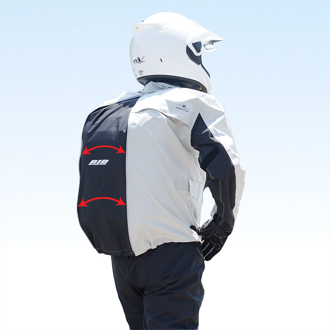 “BIB” それはバッグを背負ったまま着られるストレッチ生地採用のレインスーツ