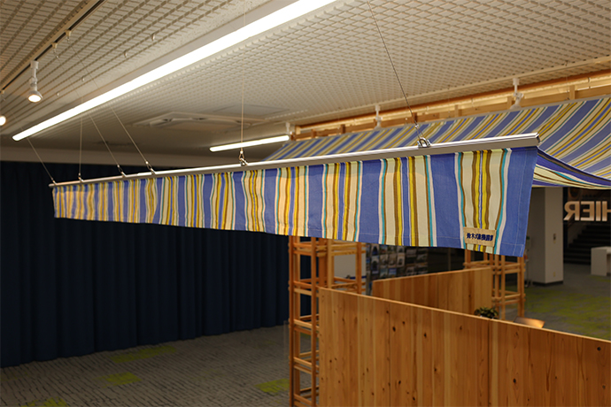 店舗には天竜材や遠州織といった浜松やスズキにゆかりのある素材を活用