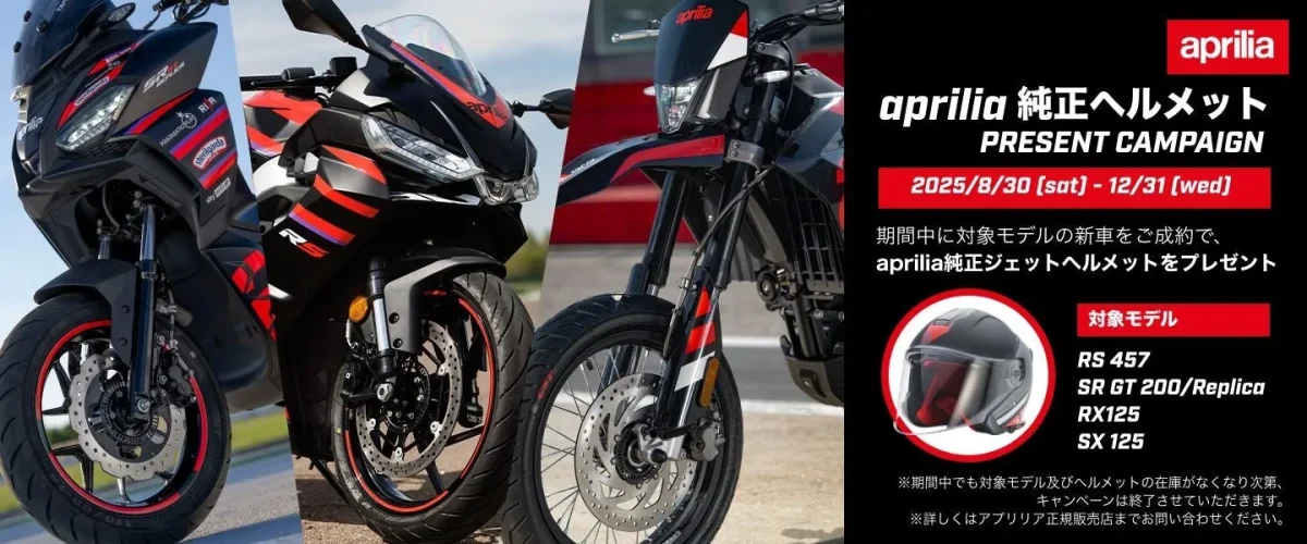 アプリリアは、2025年8月30日から12月31日までの期間、対象モデルの新車購入者を対象に、約23,100円(消費税込み)相当のアプリリア純正オープンフェイスヘルメットをプレゼントするキャンペーンを実施する。本キャンペーンは、新規にモーターサイクルの購入を検討しているライダーや、初期費用を抑えたい層に特にメリットがあるだろう。