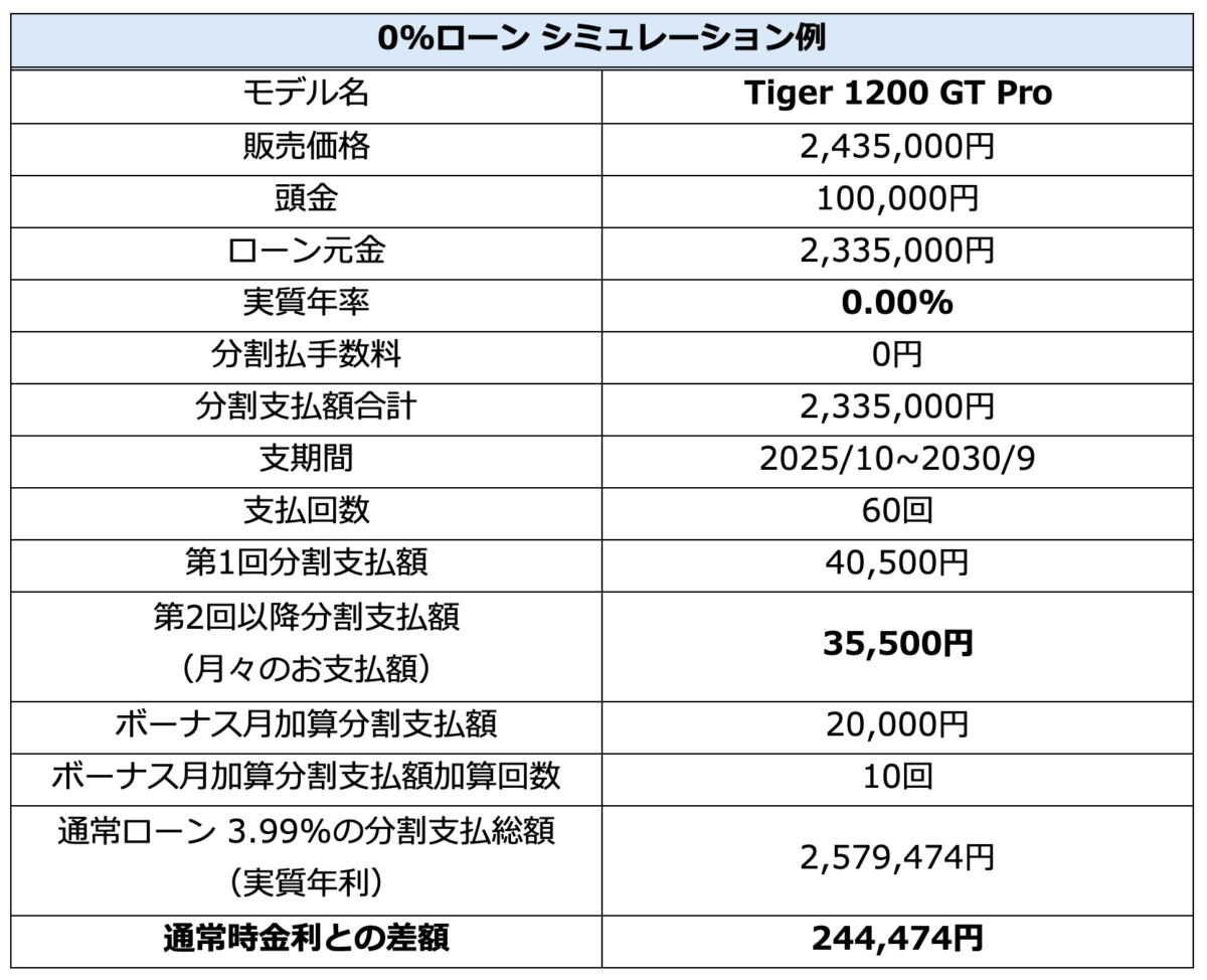 ■Tiger 1200 0%特別無金利ローン