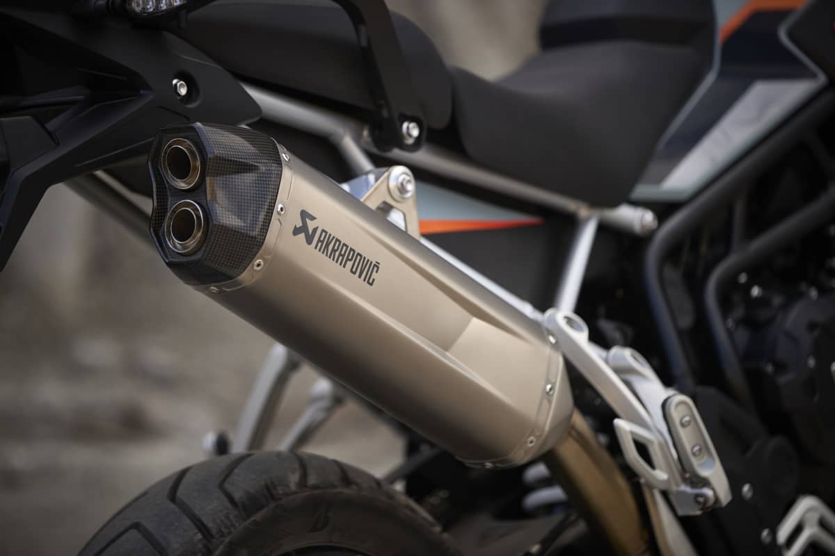 - 「Tiger 900」特別仕様車の両モデルには、トライアンフのアドベンチャーモデルとして初めて、アクラポヴィッチ製サイレンサーを標準装備しています。