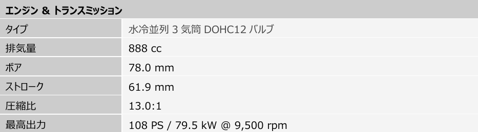 三気筒エンジンが生み出す圧倒的なパフォーマンス