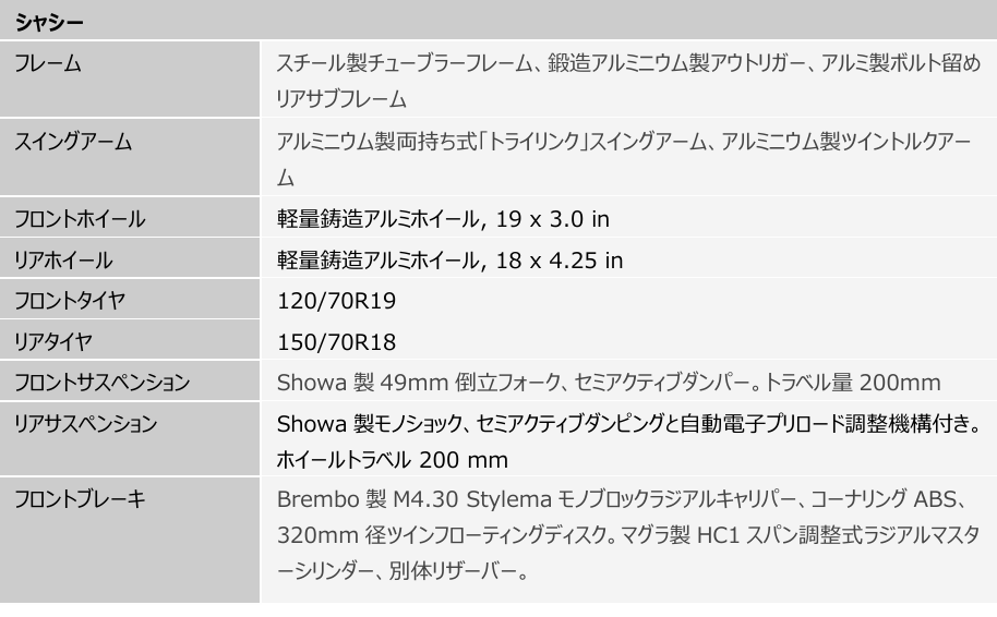 888cc トリプルエンジンを搭載し、9,500rpmで108PS、6,850rpmで90Nmのトルクを発揮。レスポンスに優れたパワーデリバリーと高い燃焼効率、さらにEuro 5+ 規制適合により、長距離ツーリングからテクニカルなオフロード走行まで幅広く対応。パフォーマンスと実用性を理想的なバランスで融合したモデルです。