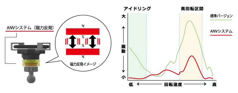 エフロックプロテクトZホルダーは磁石の反発を利用して、振動を吸収する画期的なシステムで、高い防振性を実現している。