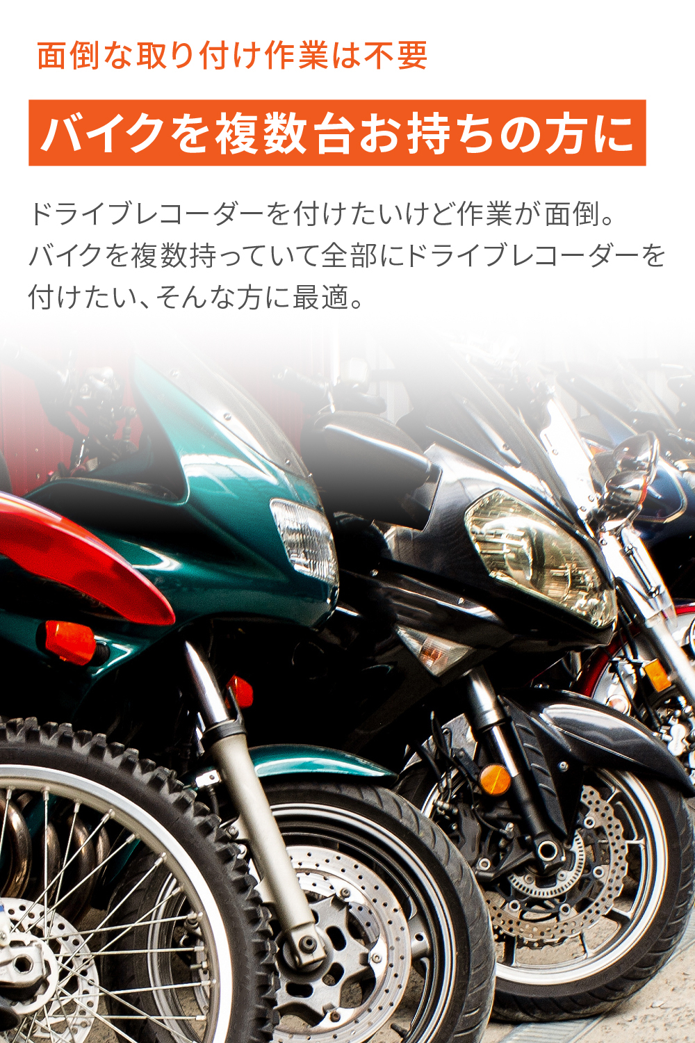 ヘルメット装着型のドライブレコーダー。本体をマウントに装着するだけで自動で電源がON、録画が開始されます。前後フルHD、2カメラ付き。7.5時間の連続録画が可能です。カメラ位置や録画映像をスマートフォンで簡単確認。ご購入日より1年の保証付き。