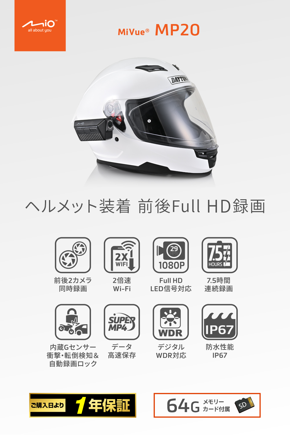 ヘルメット装着型ドラレコ登場 「MiVue MP20」で前後録画を手軽に