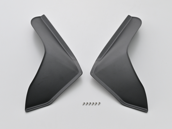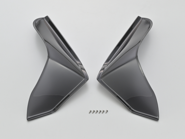 スポーティーなエアロフォルムのサイドバイザー左右セット。走行時に足に当たる風を抑制し寒さと疲労を軽減します。取り付けは両面テープとタッピングビスだけで簡単。