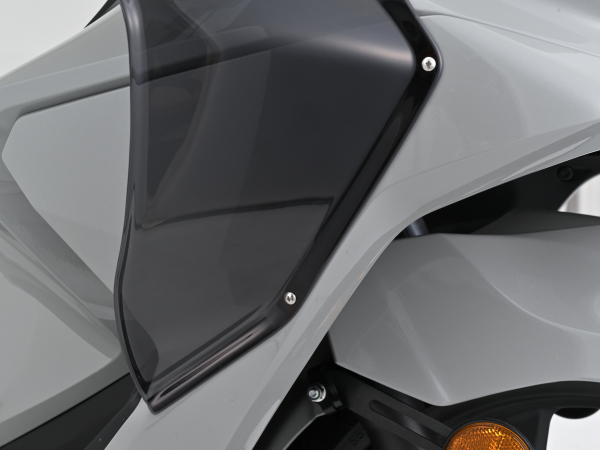 同製品は、スポーティなエアロフォルムが特徴で、走行中に足元へ当たる風を軽減し、寒さや疲労の緩和に貢献する。素材には2mm厚の耐衝撃アクリルを使用し、カラーはスモークとマットブラックの2色展開。両面テープとタッピングビスによる簡単な取り付けが可能で、スタイルと機能性を両立したカスタムパーツである。価格は14,850円(税込)。