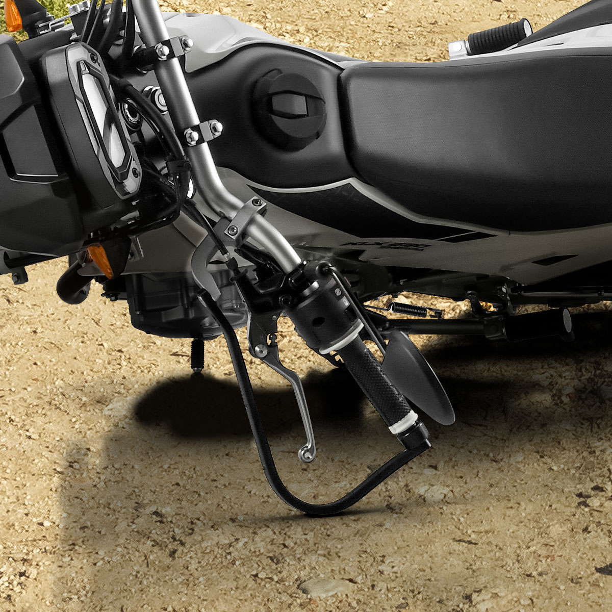 同製品は、高強度アルミニウム合金を採用し、オフロード走行や転倒時の車両ダメージを軽減する設計だ。また、専用クランプによりワイヤー類との干渉を避け、純正ハンドルバーにボルトオンで装着可能で、純正バーエンドカバーを活かせる点も特徴である。価格は15,950円(税込)。