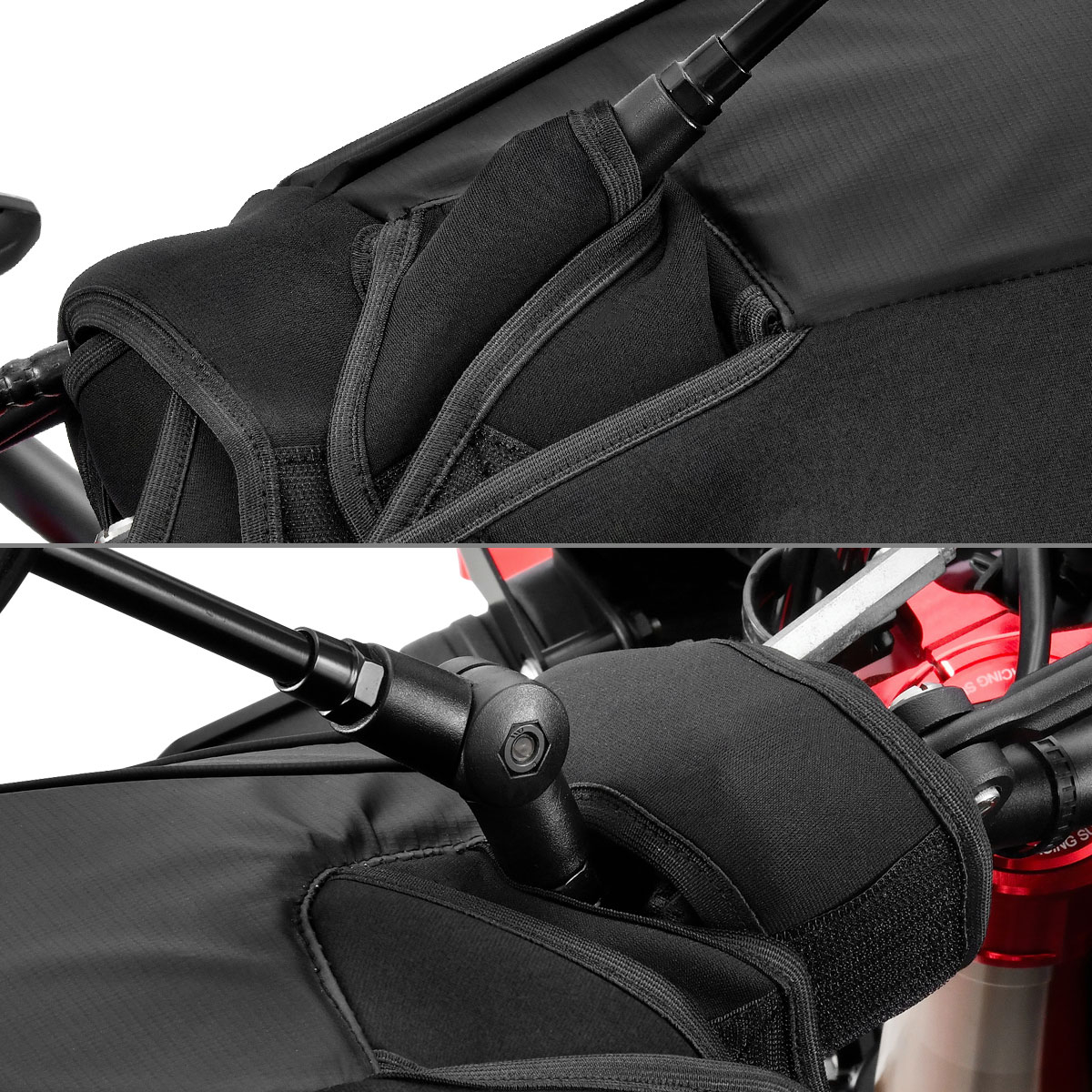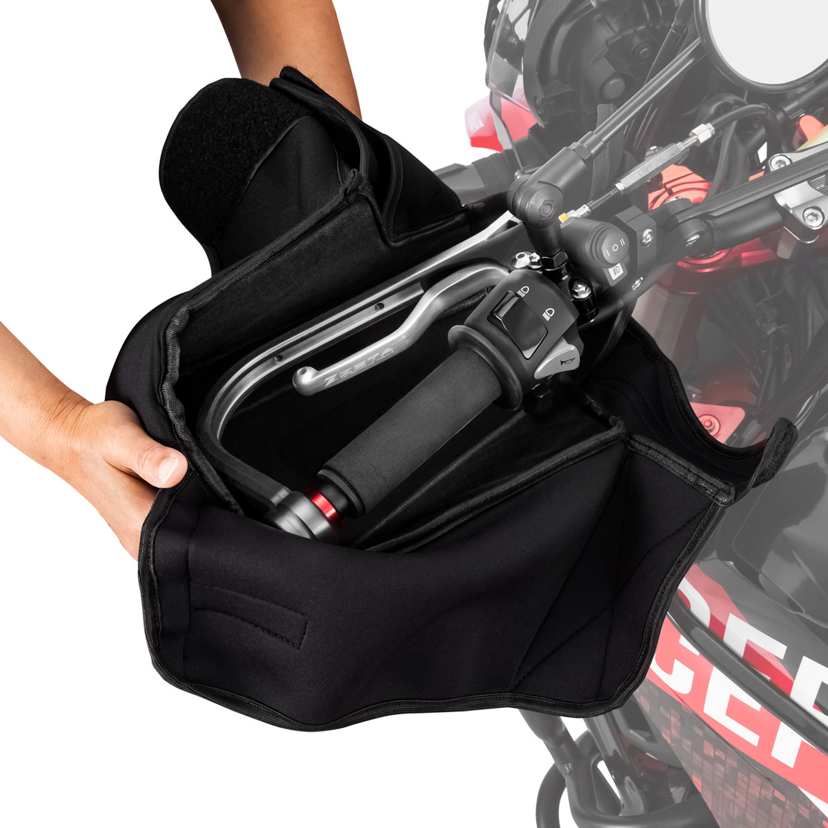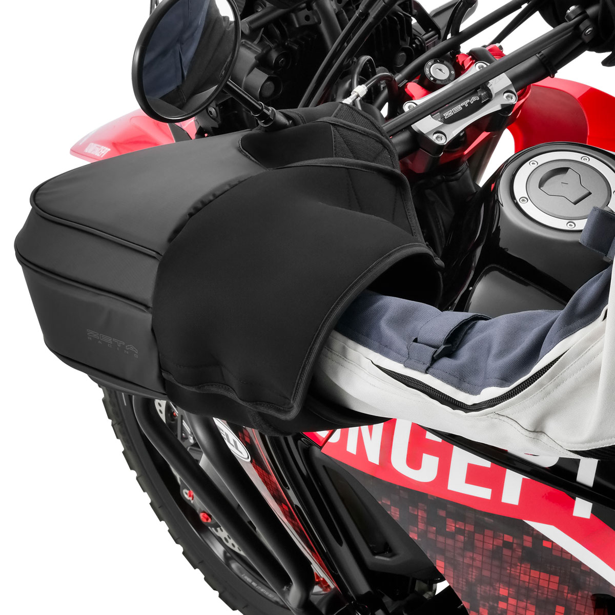 • 本製品はZETAハンドガードに専用設計されたハンドウォーマーです。純正ハンドガードや社外製品に関しては、ハンドガードの大きさや形状によっては取付けができない場合がございます。ハンドウォーマーのサイズをご確認の上、ご検討ください。