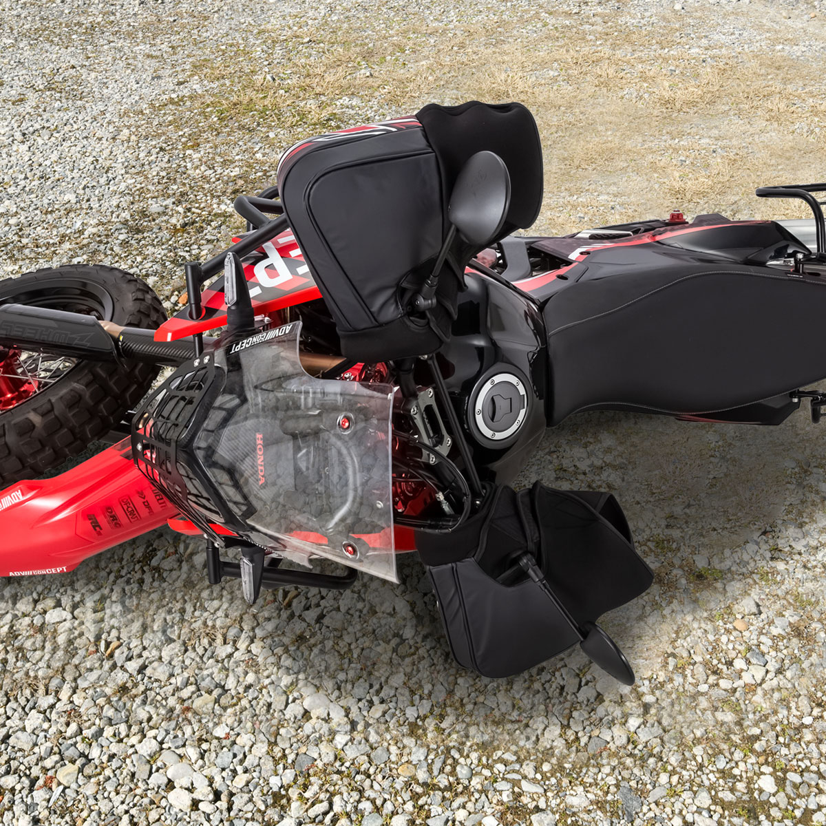 厳冬期の不安定な路面コンディションの中、ハンドガードを内蔵できることで、転倒時の走行不能リスクを大幅に軽減。
