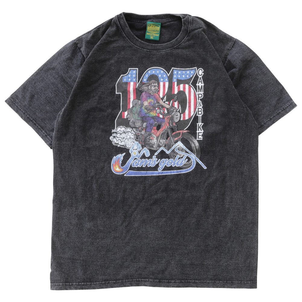 以前にも発売していたアメリカンバイクおじさんTee 最近はやりの古着風バンドTeeやハーレーTeeのような風合いで復活 リアルを意識してバイオウオッシュ加工されたボディーにヤレたプリントで製作