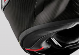 SHOEI のノウハウとそれを裏付ける圧力解析から空気抵抗の少ない形状を割り出し、それをベースに自社大型風洞設備での検証を重ねブラッシュアップ。時速 350km/h を超える超高速走行でも安定した空力性能を発揮する完全新設計のエアロフォルムは、ピンと張りつめた緊張感のある雰囲気を漂わせます。