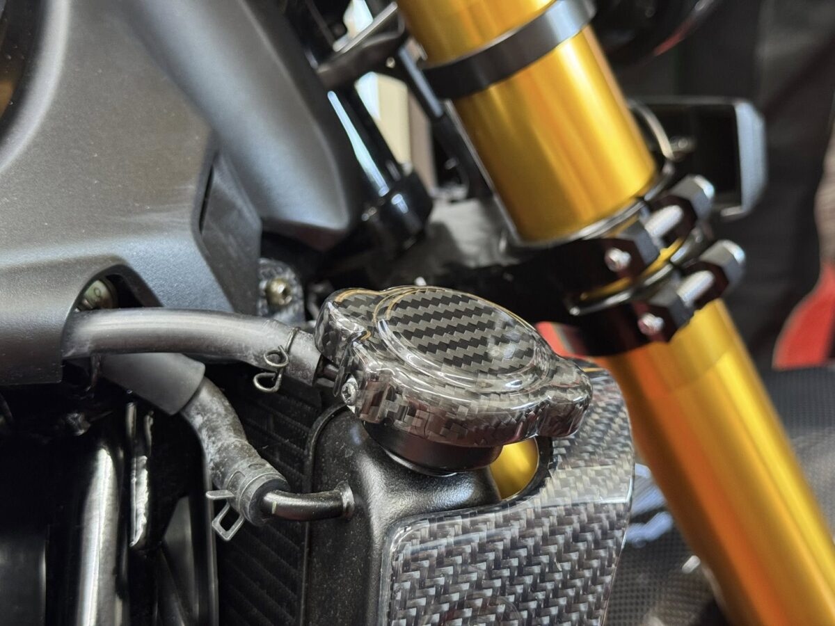 カスタムを進めて行くと気になる純正ラジエターキャップの存在感をカーボンでドレスアップ!