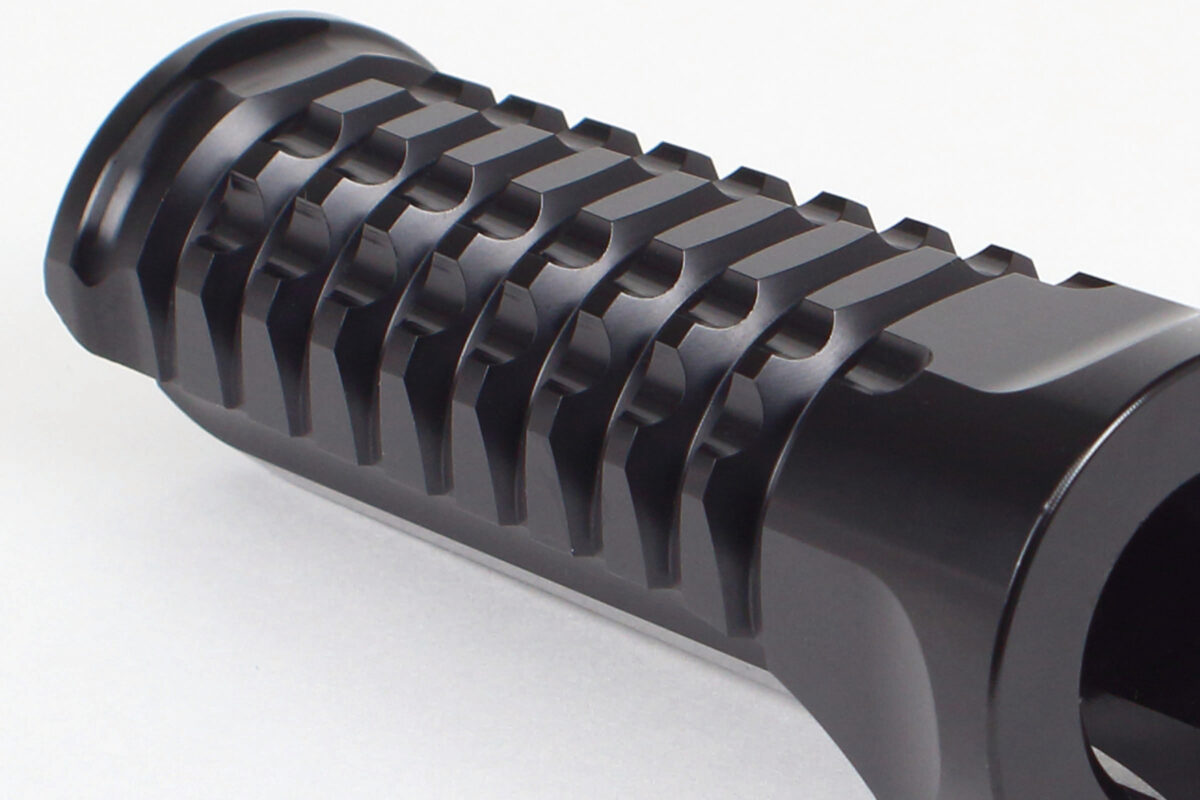 又、ステップに滑止め加工を施すことで、フットポジションが安定し、快適なライディングをお楽しみ頂けます。ステップ長はノーマルステップとほぼ同じです。