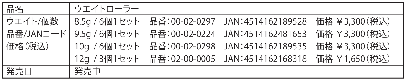 摩耗するウエイトローラー、スライドピースに関しましては、補修部品を設定しております。又、ウエイトローラーは、ライダーの使用用途に合わせ、カスタマイズできる様、キット付属品を含む4種類(8.5g/9.5g/10g/12g)を設定しております。