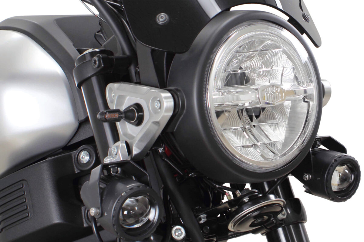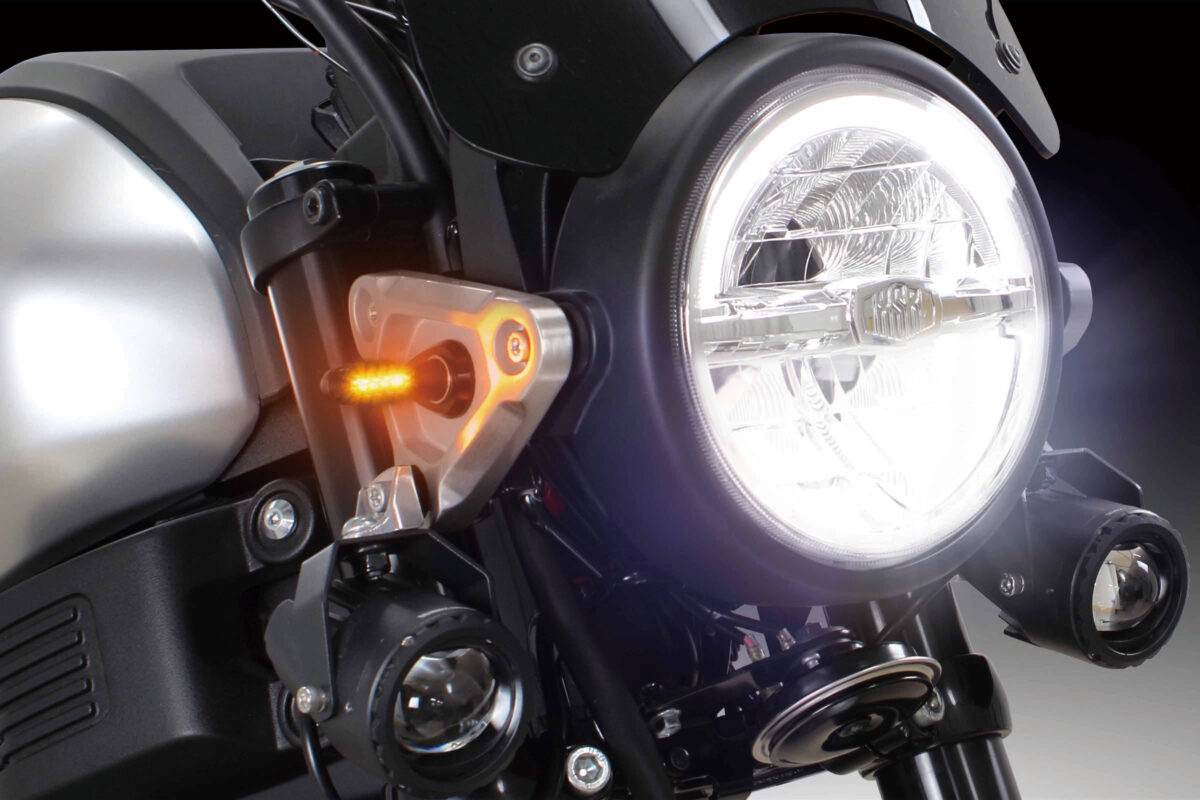 ウインカーレンズは精悍な雰囲気のスモークレンズを採用。ウインカーボディーには、SP武川ロゴのレーザーマーキング入り。