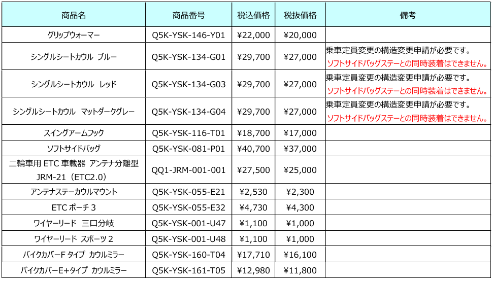 | ソフトサイドバッグステー YZF-R9 | Q5K-YSK-156-P01 | ¥19,800 |