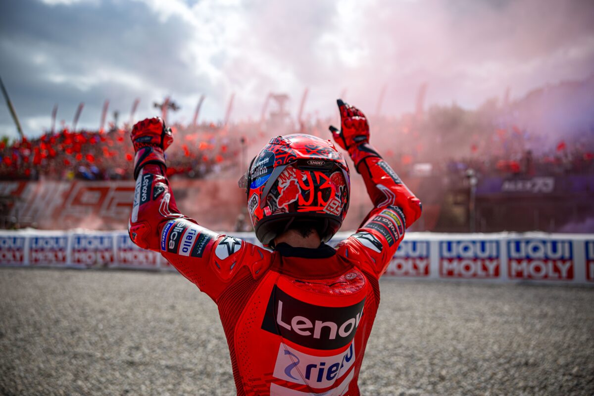 2025年シーズン第15戦カタルーニャGPでマルク・マルケスがスプリントレース優勝を果たし、残り7戦を残して通算7度目の戴冠を決定。マルケス兄弟やバニャイアらの活躍に支えられ、今季は29戦中27勝を記録する圧倒的な強さを示した。これによりMotoGP史上最長となる6連覇を樹立し、ドゥカティの技術力と開発力の優位性を改めて証明した形となる。