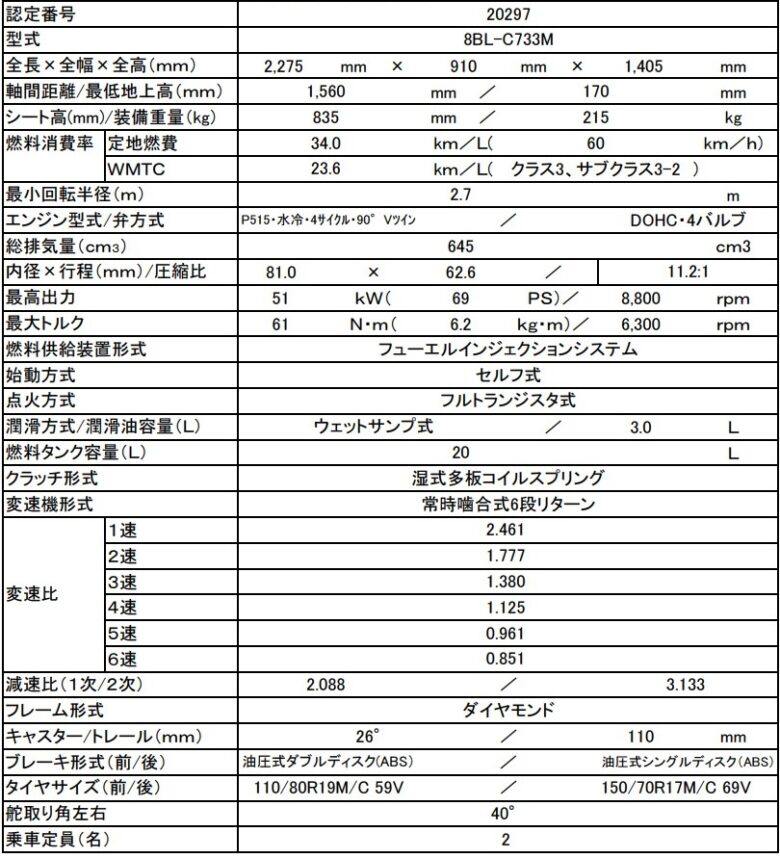 ※4:WMTCモード値は、発進、加速、停止などを含んだ国際基準となっている走行モードで測定された排出ガス試験結果にもとづいた計算値である。走行モードのクラスは排気量と最高速度によって分類される。