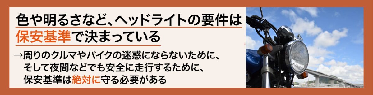 実は、バイクの安全確保を目的に設けられた保安基準において、バイクの前照灯は明確に定められています。
